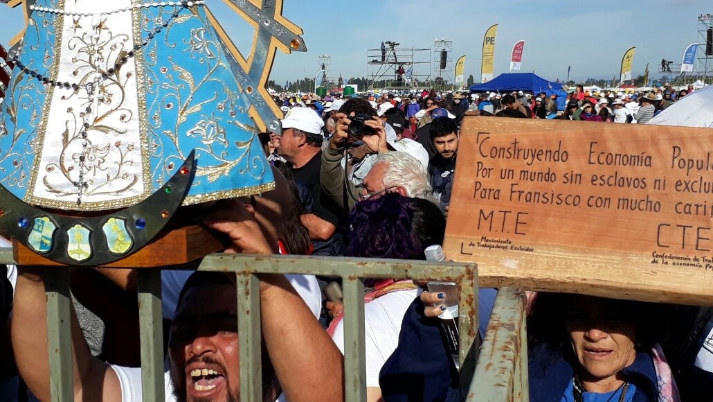 Terminaba la misa. En el paseo de ‘el puente’ entre la gente, descubrí su nombre: un cartonero, reciclador urbano de la ciudad de Buenos Aires, se abalanzó hacia la valla. Tenía las manos gastadas, la mirada brillante y la voz potente: ‘Jorge, te amamos, no aflojes, vamos a estar para bancarte’.