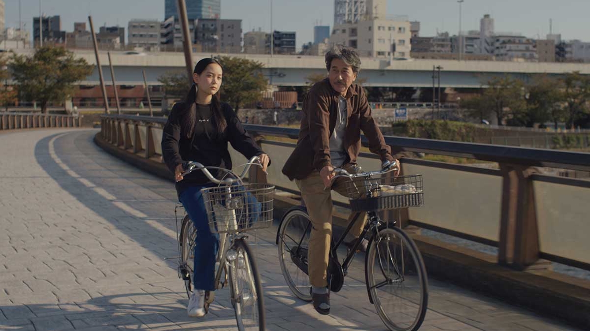 El protagonista, el señor Hirayama, se levanta cada día, se higieniza y se asoma a la puerta de su casa humilde en un barrio de Tokio, sin duda de gentes de bajos ingresos, mira el cielo y sonríe. Eso cada día, luego se va a su jornada de trabajo, que consiste en limpiar baños, tarea que hace con tal dedicación y perfeccionismo, como si se tratara de una operación de cirugía mayor o de un joyero dando brillo a su mejor creación. Tiene hábitos sencillos: almorzar en un parque contemplando y sacando fotos a la luz que se cuela entre los árboles, a la noche luego de su baño (en un sitio público) tomar algo en un bar, andar en bicicleta, escuchar música en el camino a su trabajo cada día, comprar libros, leer siempre antes de dormir. Poco más. La cámara sigue esos movimientos y su rostro que se nos va haciendo cada vez más acogedor, familiar, y expresivo en su silencio.